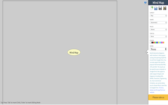 Create your own mind map now using this free online mind map creator software. Our software allows you to organize your project/brainstorm for ideas and much more when you use a mindmap to clarify and write out your points. You can also save your mind map into Google Drive. - Create Mind maps for free - Save your mindmap into Google Drive